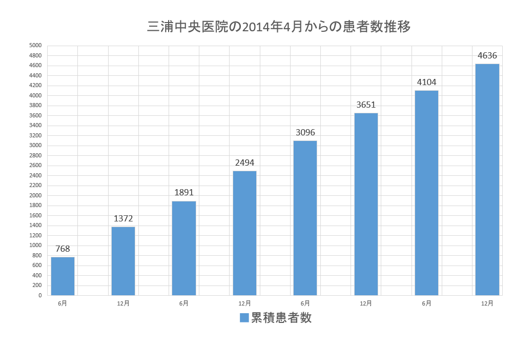全国的にも開業3年でこれだけ多くの患者様が集まる医院は例がないそうであり、皆様のおかげで三浦中央医院の名前は全国に知られるようになりました。いつも当院を受診して頂いている患者様には心からの感謝を申し上げます。